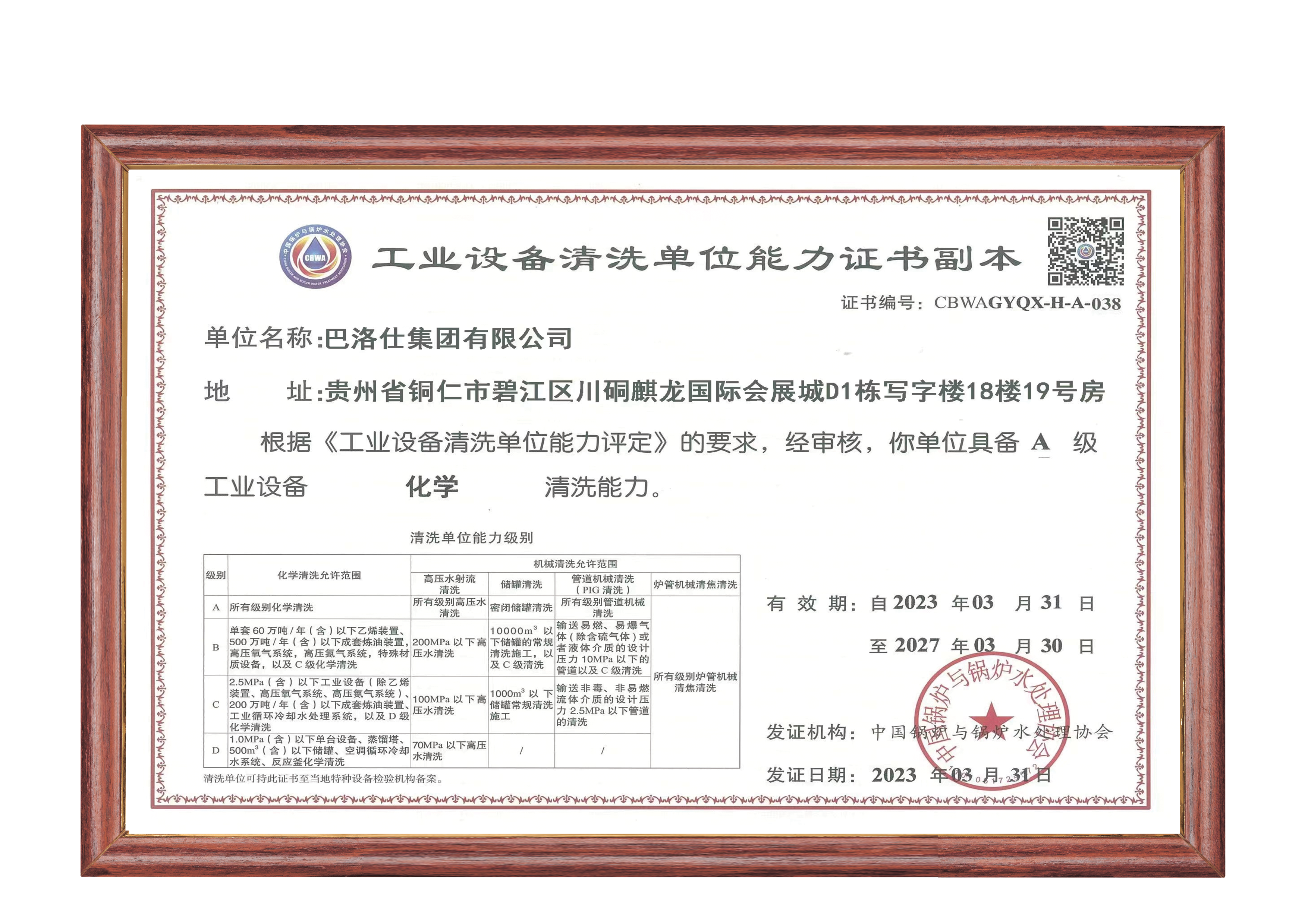 - 化學(xué)清洗服務(wù)企業(yè)資質(zhì)證書