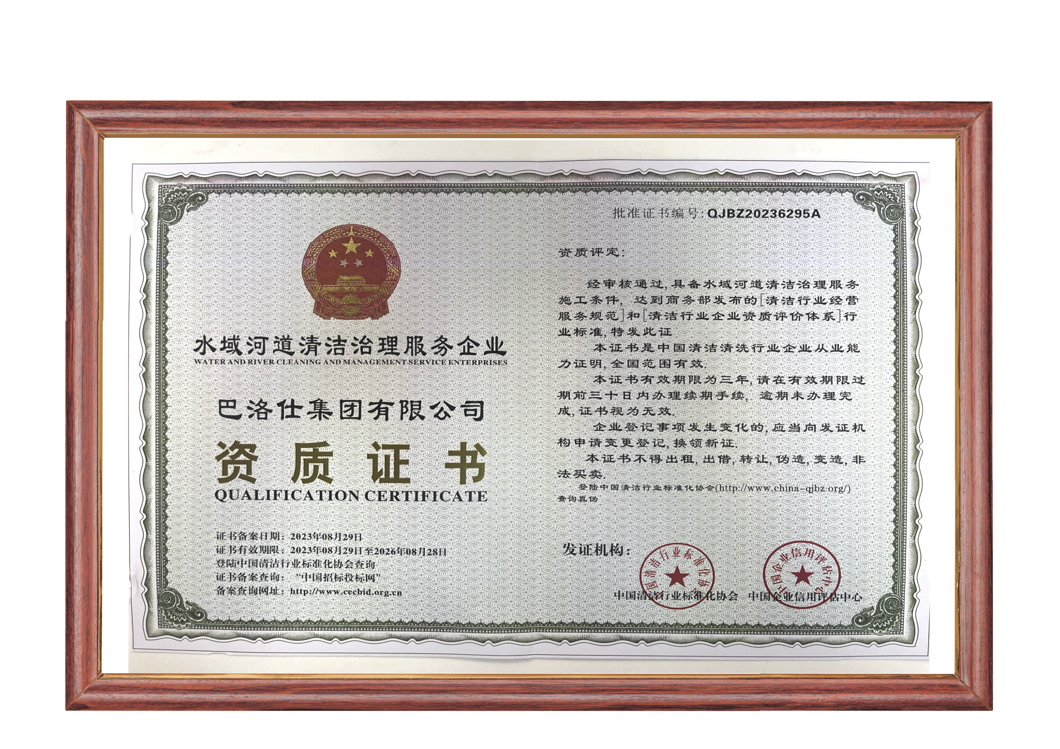 - 水域河道清潔治理服務(wù)企業(yè)資質(zhì)證書