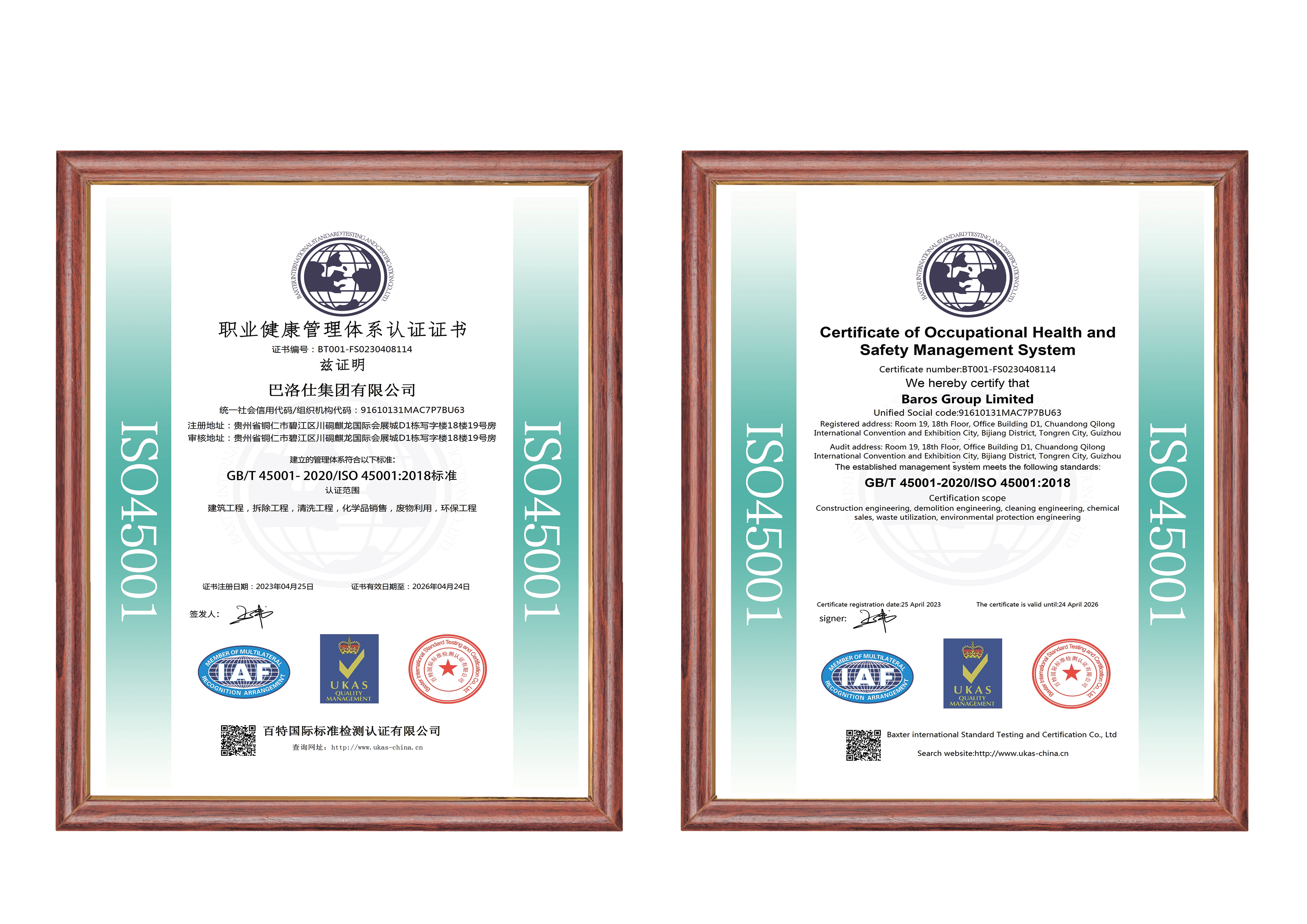 - 職業(yè)健康管理體系認(rèn)證證書