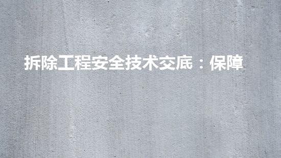 拆除工程安全技術(shù)交底:保障工程安全,保護施工人員生命財產(chǎn)安全