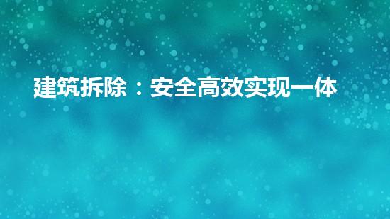 建筑拆除:安全高效實(shí)現(xiàn)一體化服務(wù)