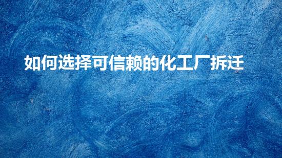 如何選擇可信賴的化工廠拆遷公司?