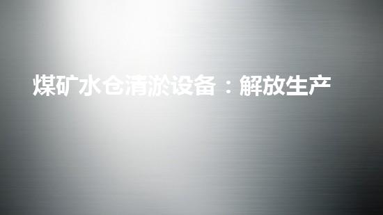 煤礦水倉(cāng)清淤設(shè)備:解放生產(chǎn)力,保障安全!