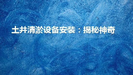 土井清淤設(shè)備安裝:揭秘神奇黑科技,助你解決排水難題!