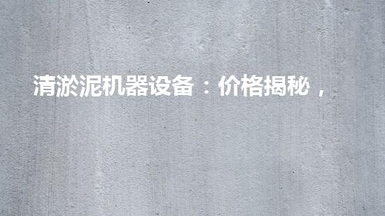 清淤泥機(jī)器設(shè)備:價(jià)格揭秘,你所不知道的市場秘密!