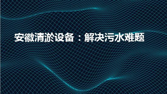 安徽清淤設(shè)備:解決污水難題,讓城市更清新!