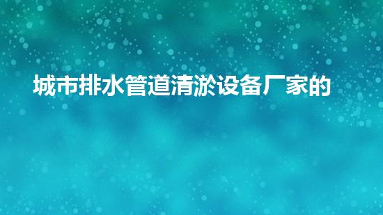 城市排水管道清淤設(shè)備廠家的技術(shù)革新與市場前景