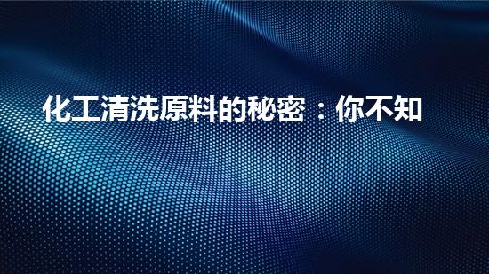 化工清洗原料的秘密:你不知道的清潔神器!