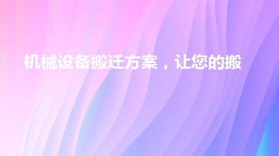 機械設備搬遷方案,讓您的搬遷更加順暢
