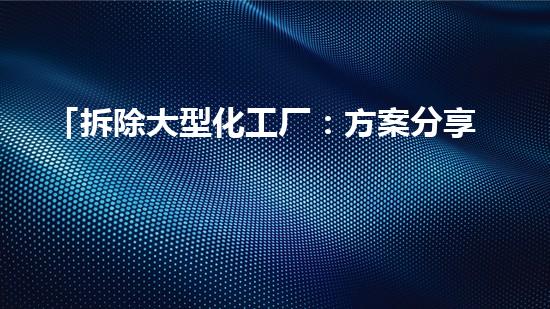 「拆除大型化工廠:方案分享與實(shí)踐經(jīng)驗(yàn)」