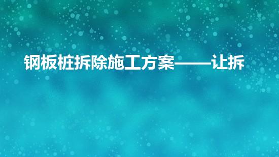 鋼板樁拆除施工方案——讓拆除更高效、環(huán)保