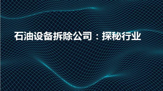 石油設(shè)備拆除公司:探秘行業(yè)內(nèi)的頂尖技術(shù)與操作流程?